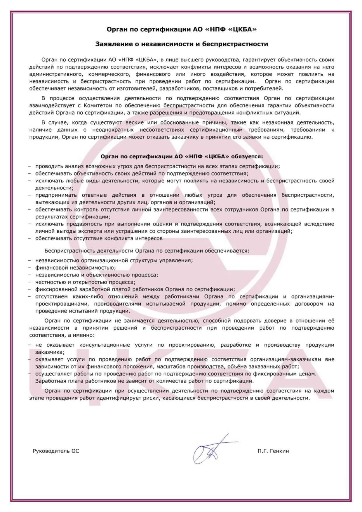 Руководитель Органа по сертификации АО «НПФ «ЦКБА» — Генкин Павел Георгиевич.